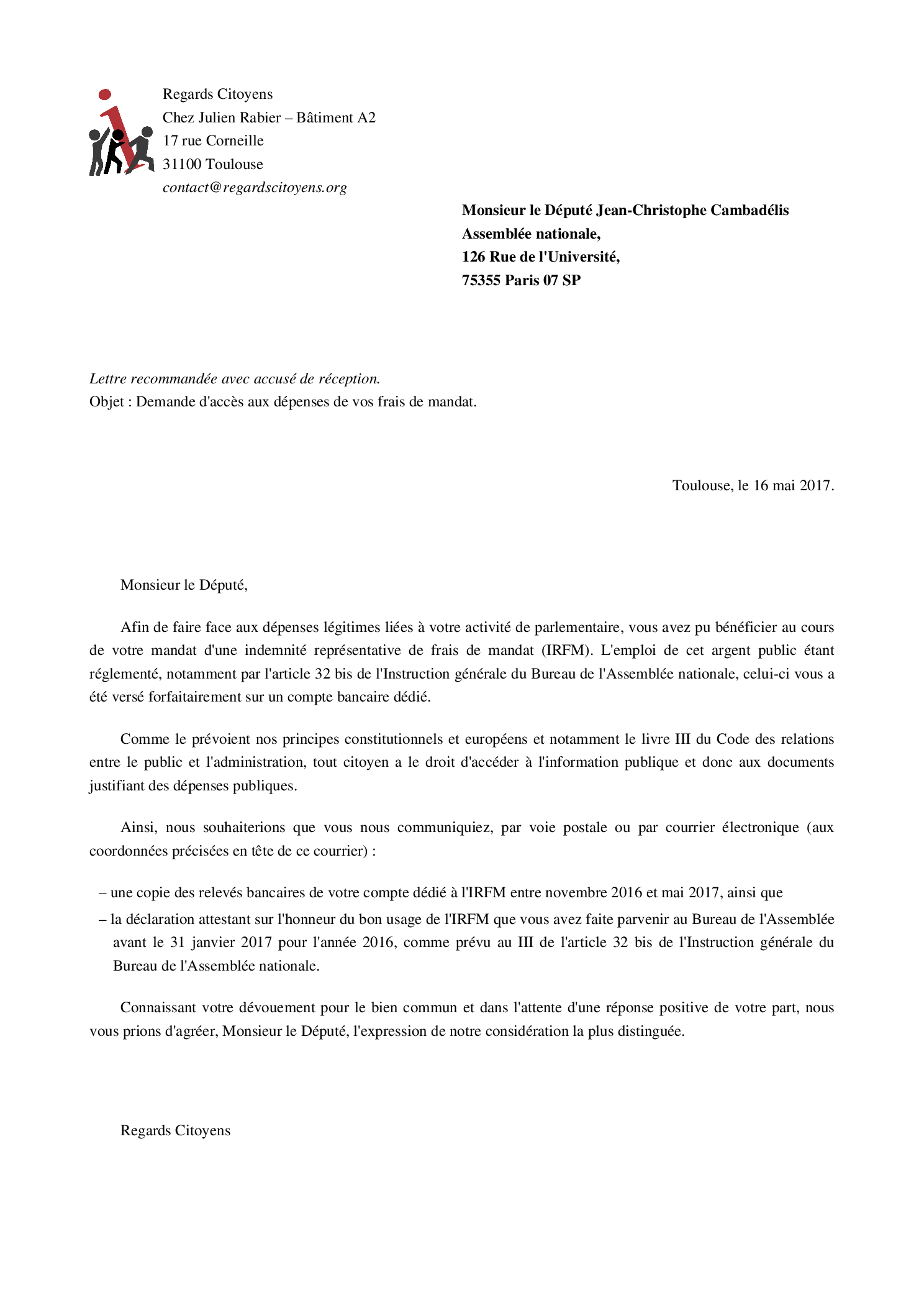 Aidez-nous à obtenir la transparence sur l'Indemnité Représentative de Frais de Mandat de la précédente législature !