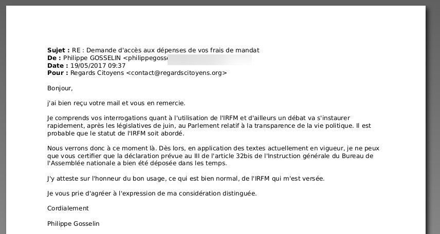 Voici la réponse complète qui a été apportée à Regards Citoyens par Monsieur le Député. |