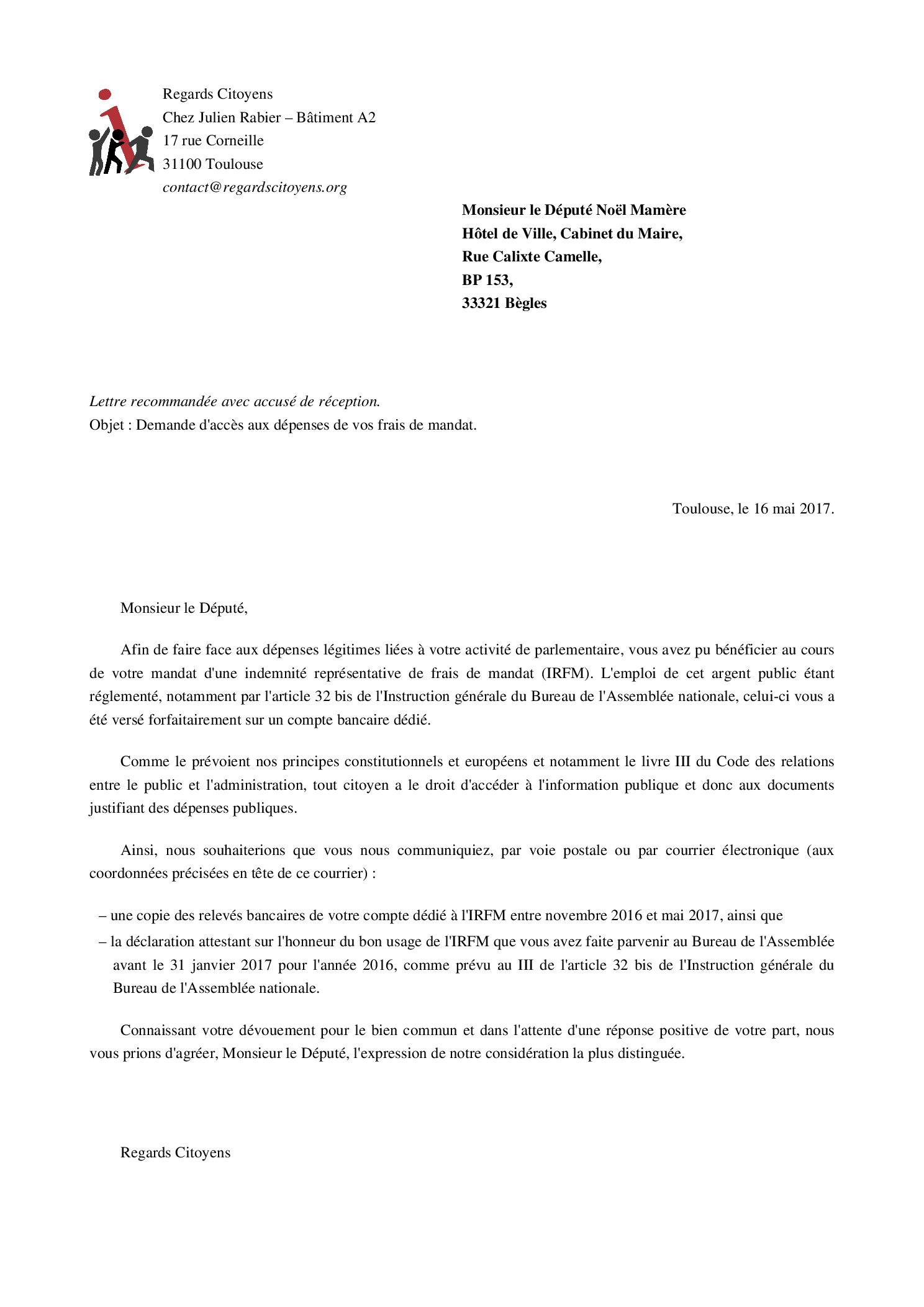 Aidez-nous à obtenir la transparence sur l'Indemnité Représentative de Frais de Mandat de la précédente législature !