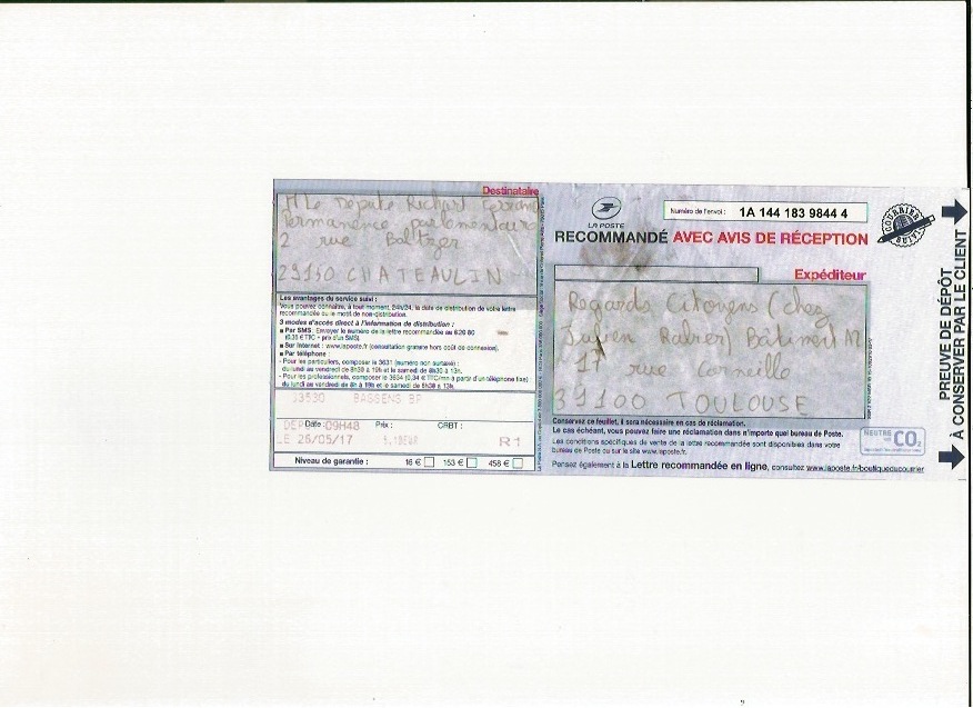 | Pris en charge | xlilou33x | ven. 26 mai 2017 09:09:16 | Télécharger le courrier (PDF) PNG | |