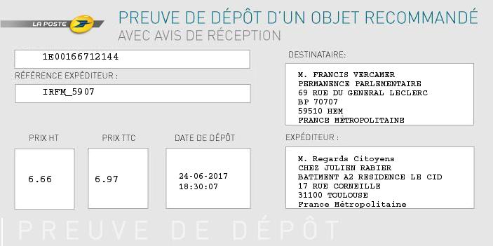 Suivi : 1E00166712144 – En cours de traitement (31/07/2017) Le suivi peut ne pas fonctionner avant 24 heures. |