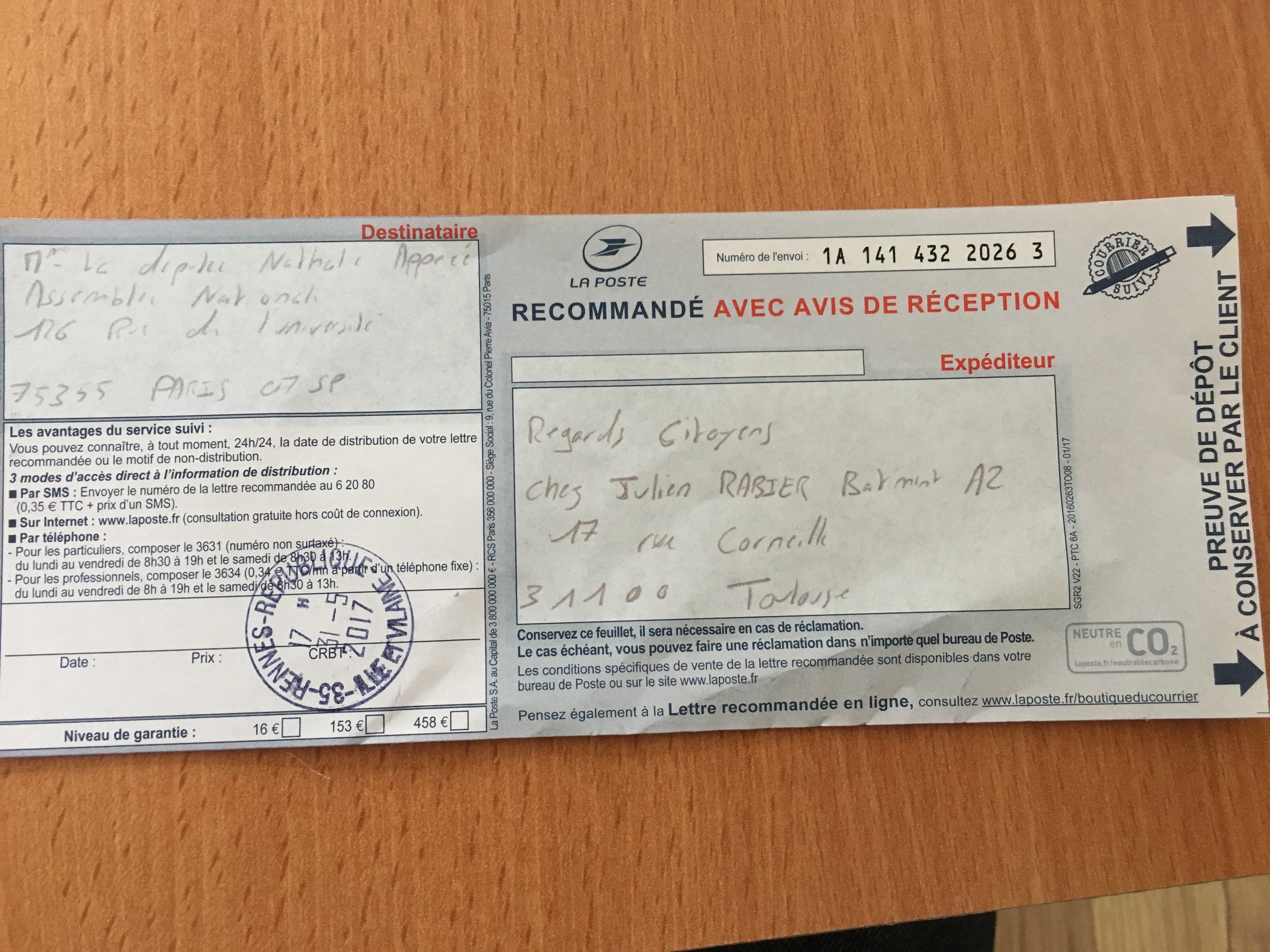 | Pris en charge | Slevin | mar. 30 mai 2017 01:32:22 | Télécharger le courrier (PDF) PNG | |