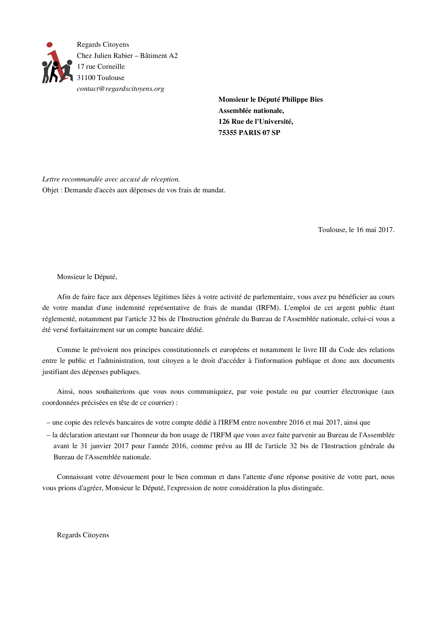 Aidez-nous à obtenir la transparence sur l'Indemnité Représentative de Frais de Mandat de la précédente législature !