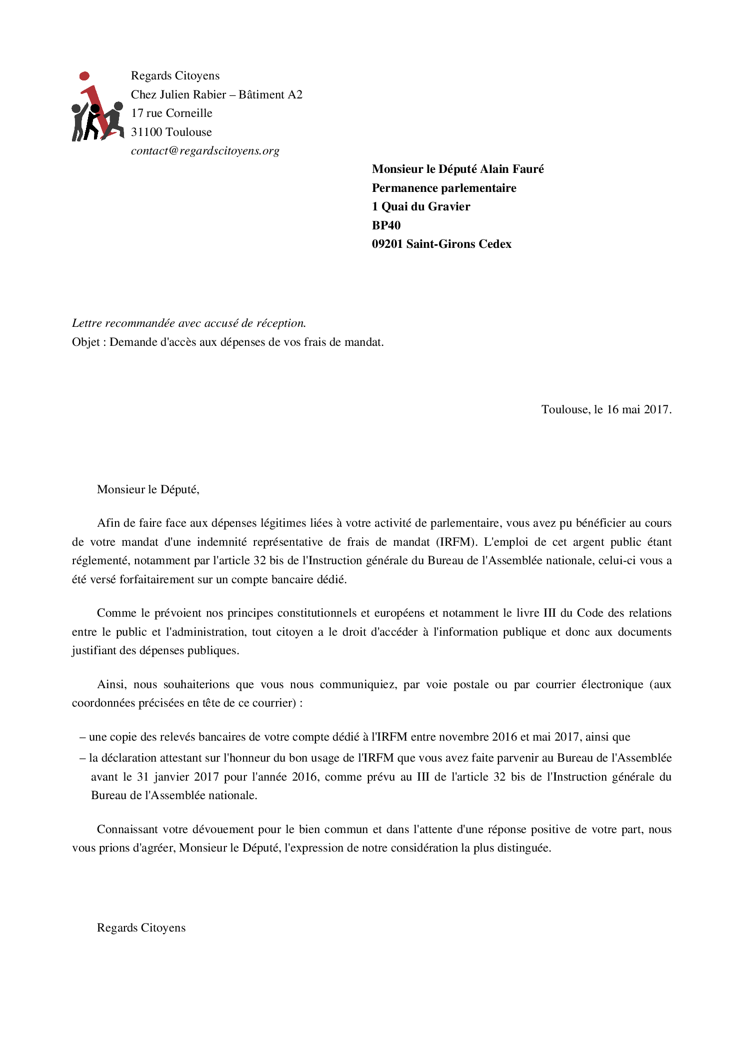 Aidez-nous à obtenir la transparence sur l'Indemnité Représentative de Frais de Mandat de la précédente législature !