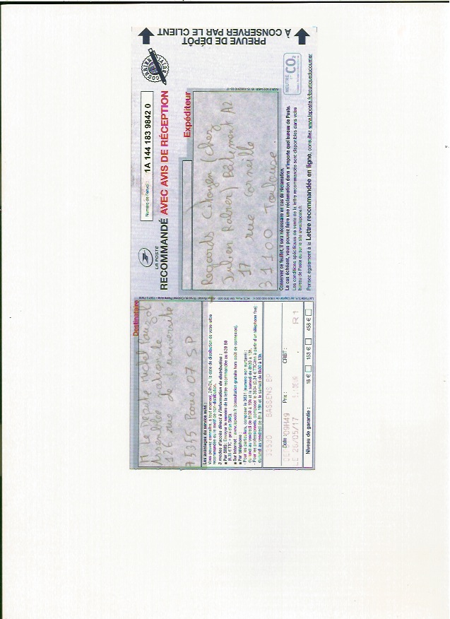 | Pris en charge | xlilou33x | ven. 26 mai 2017 09:10:59 | Télécharger le courrier (PDF) PNG | |