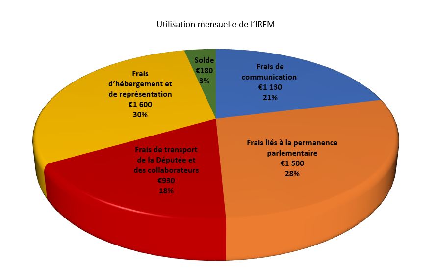 La députée nous informe avoir organisé des réunions publiques pour rendre compte de son mandat et avoir publié sur son site un camembert relatant l'utilisation faite de son IRFM. |