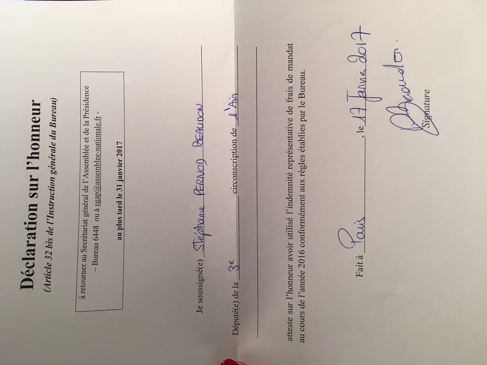 Déclaration sur l'honneur de Stéphanie Pernod Beaudon |