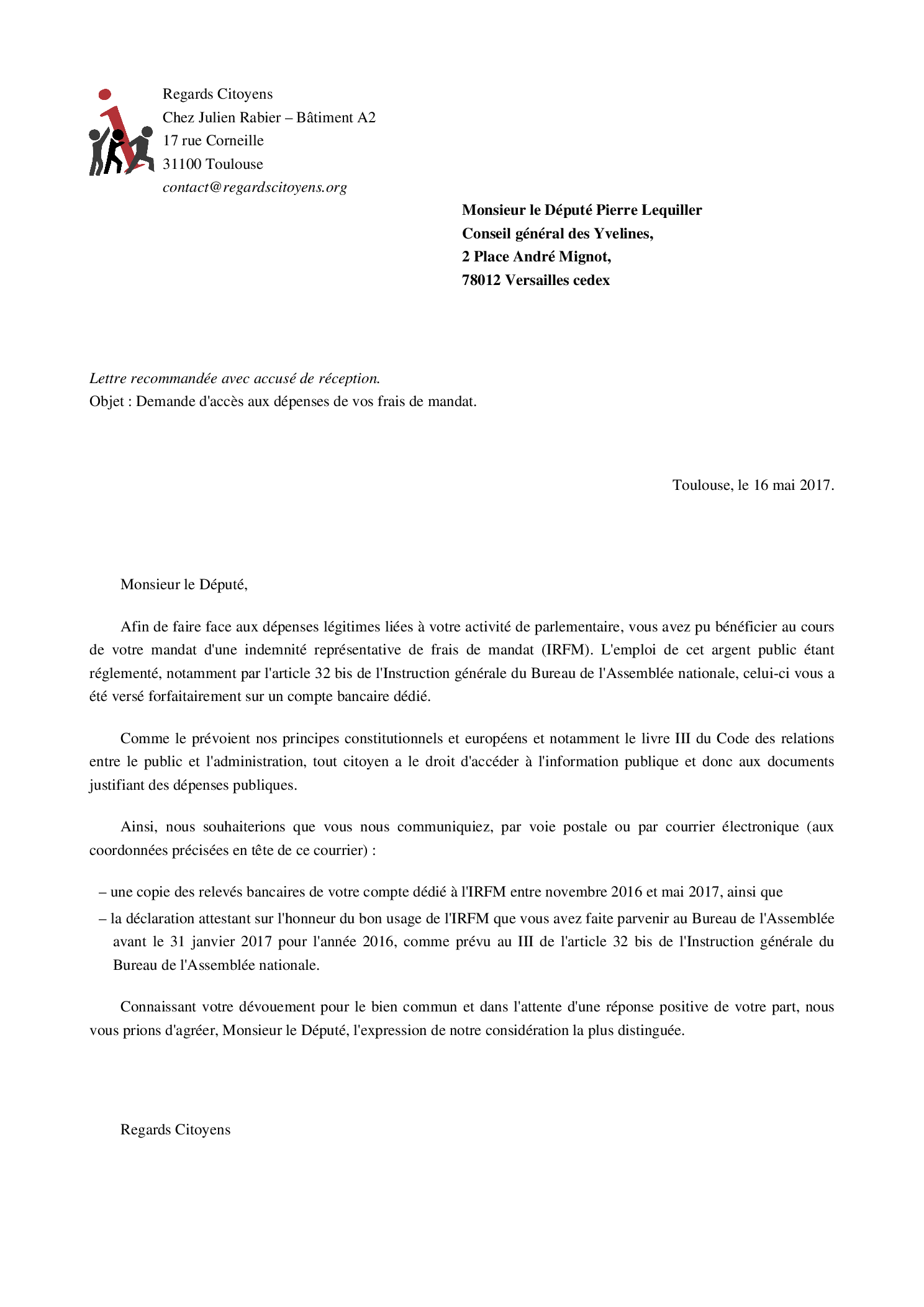 Aidez-nous à obtenir la transparence sur l'Indemnité Représentative de Frais de Mandat de la précédente législature !